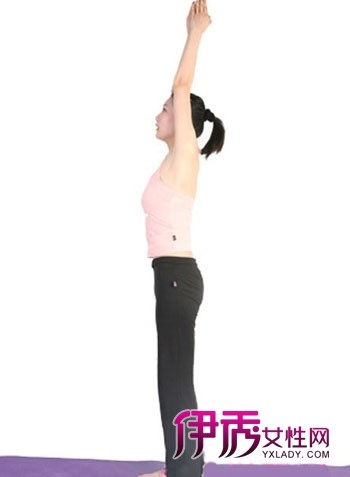 9)呼气,手缓慢地放下来。