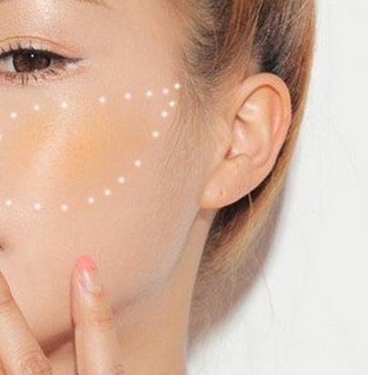 7、化妆瘦脸法:如果你觉得运动按摩太辛苦,又觉得吸脂手术太痛苦,就用这种方法好了,除了比较麻烦外,效果也是不错的! 眉形修成弓形,细而高挑,再用咖啡色将眼影拉长,并从眼尾向内勾勒出双眼凹陷效果; 鼻根勾出直挺的立体阴影; 唇形扩大,唇峰明朗,下唇厚而略方; 两颊用咖啡色打出自然凹陷阴影,脸部立体明晰的五官立刻凸现出来,镜中就有一张瘦脸出现了!