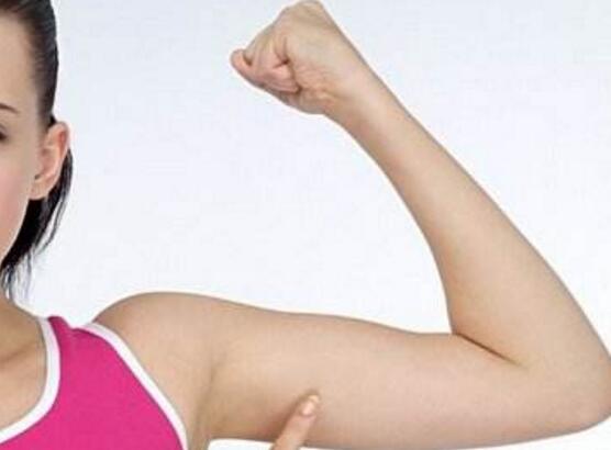 将右手抬起来,手肘弯曲,然后用左手按在右手手臂的肌肉上,一边呼气,一边按压,持续按压30秒,然后换另一边按摩。注意力度要控制好,不能太大力。