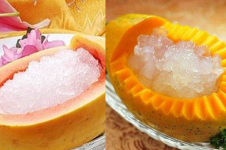 食用木瓜炖雪蛤时需注意,由于经过约1小时的炖煮,雪蛤的精华已完全融入木瓜里,所以务必将木瓜全部吃完哦!木瓜炖雪蛤被爱美的女性誉为“能吃下去的化妆品”,具有护肤养颜、能有效促进大肠蠕动,迅速排解毒素,长期食用有容光焕发的奇效。